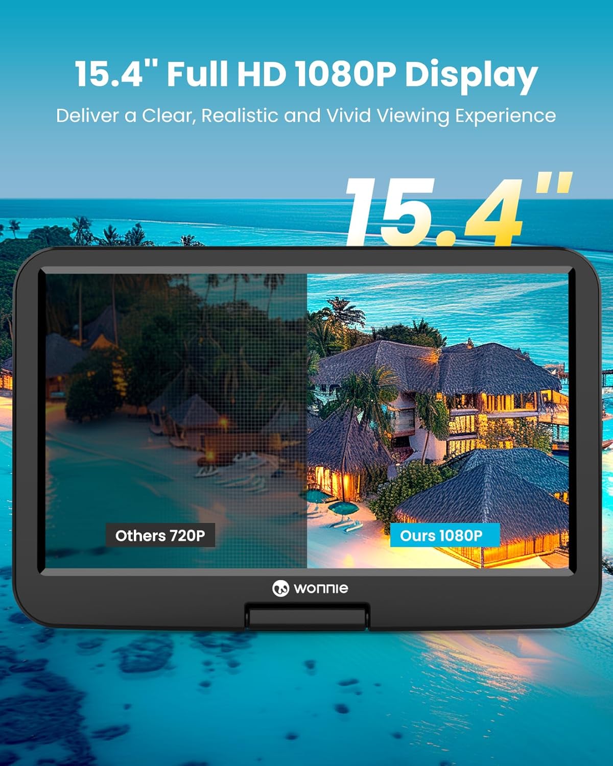 "WONNIE 17.6"" Portable Blu Ray Player with 15.4"" 1080P Full HD Large Swivel Screen