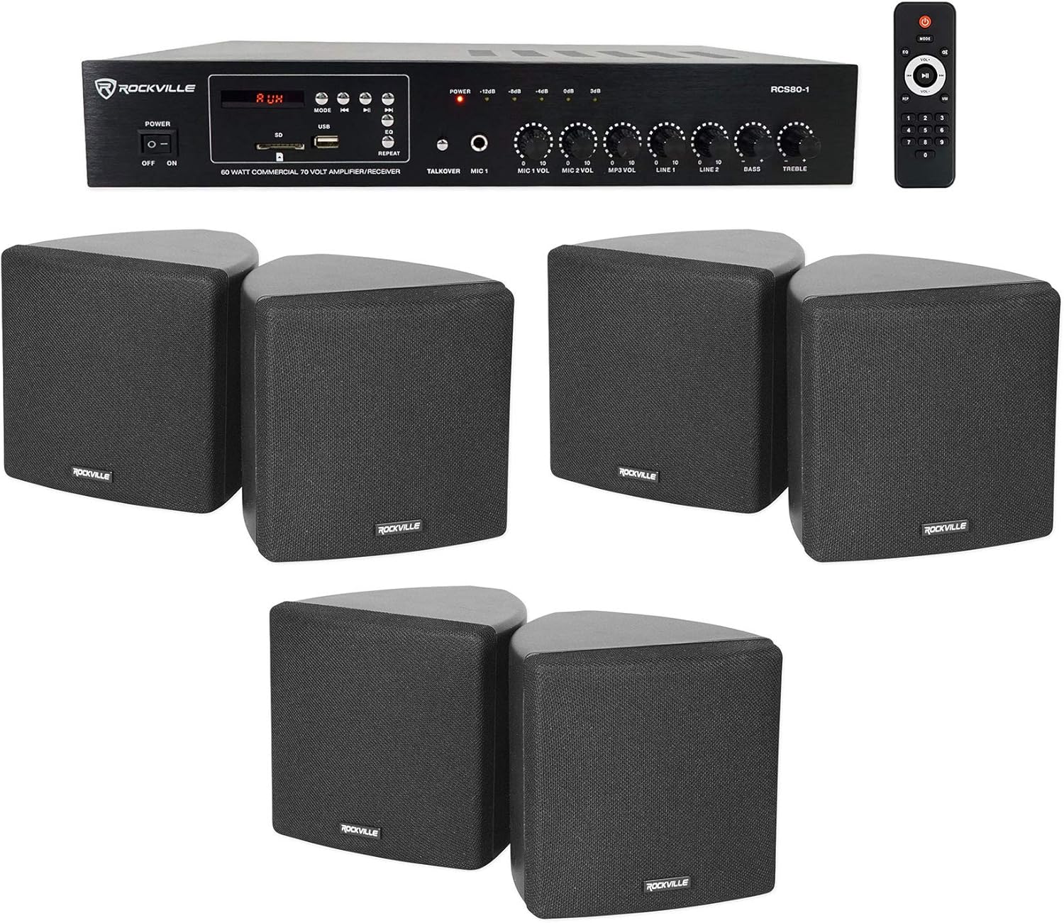 "Rockville Commercial Bundle: (3) Pair Cube 70v Black 3.5"" Swivel Wall Mount Speakers