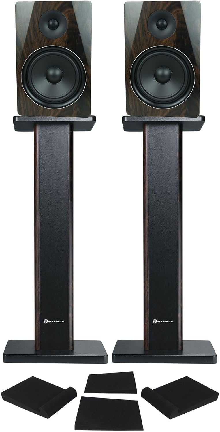 "Rockville Bundle: Pair APM8D 8"" 500W Active/Powered Studio Monitor Speakers Bundle with Pair 28"" Bookshelf Speaker Stands & Pair of RRS263M Foam Studio Monitor Isolation Pads (3 Items)"