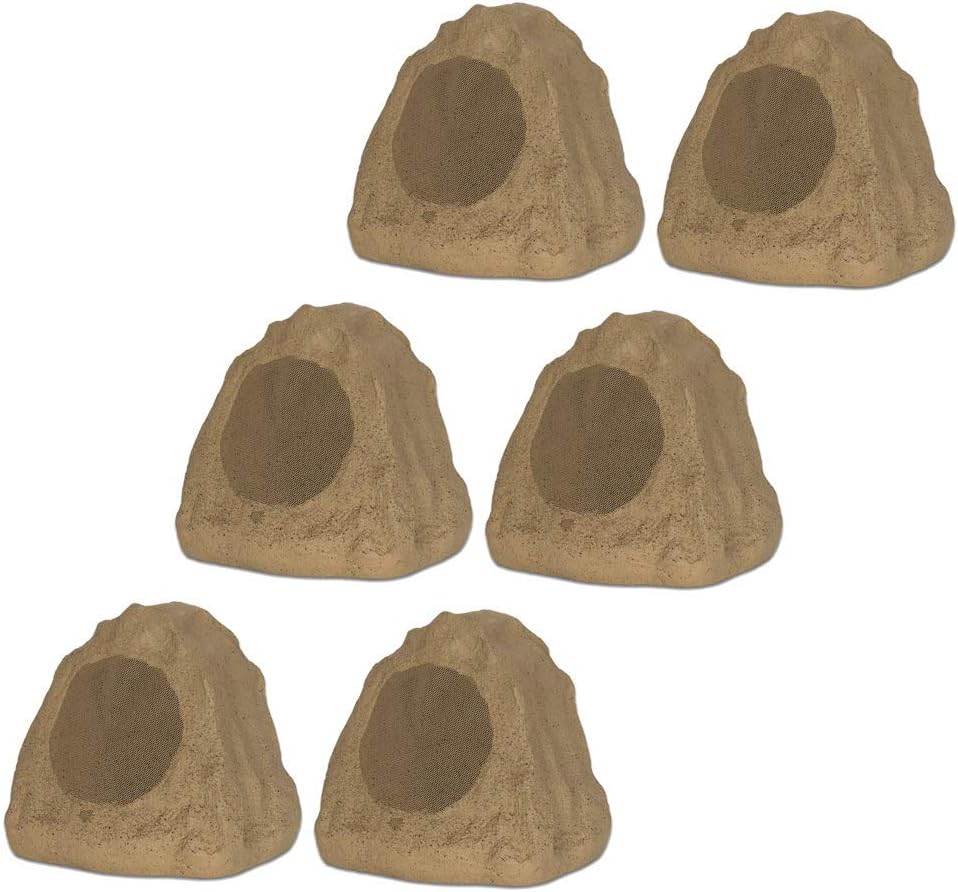 "6R6S Outdoor Sandstone 6.5"" Rock 6 Speaker Set for Deck Pool Spa Yard Garden"
