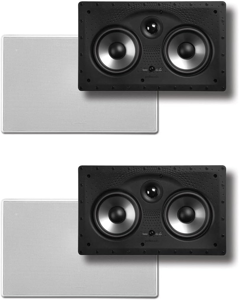 "Polk Audio Vanishing Series 255c-RT in-Wall Center Channel Speaker 5.25"" Drivers | 2 Speakers | Easily Fits into The Wall | Power Port | White Paintable Grilles"