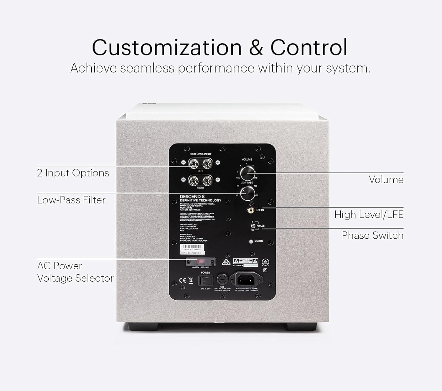 "Definitive Technology Descend DN8 8"" Subwoofer Digitally Optimized for Movies and Music