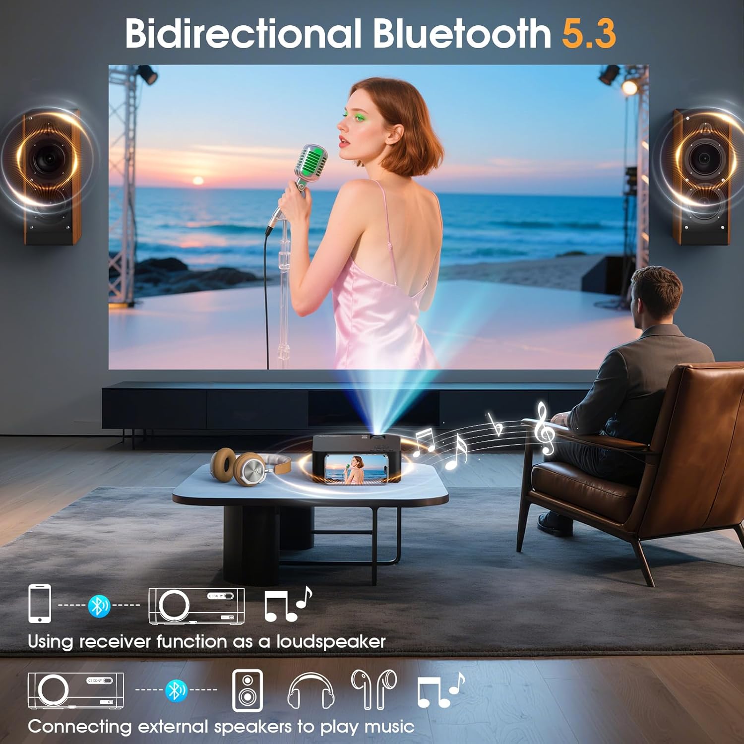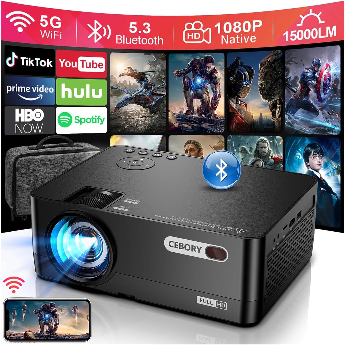 "5G WiFi Bluetooth 15000LM Native 1080P Projector (Projector Screen Included)