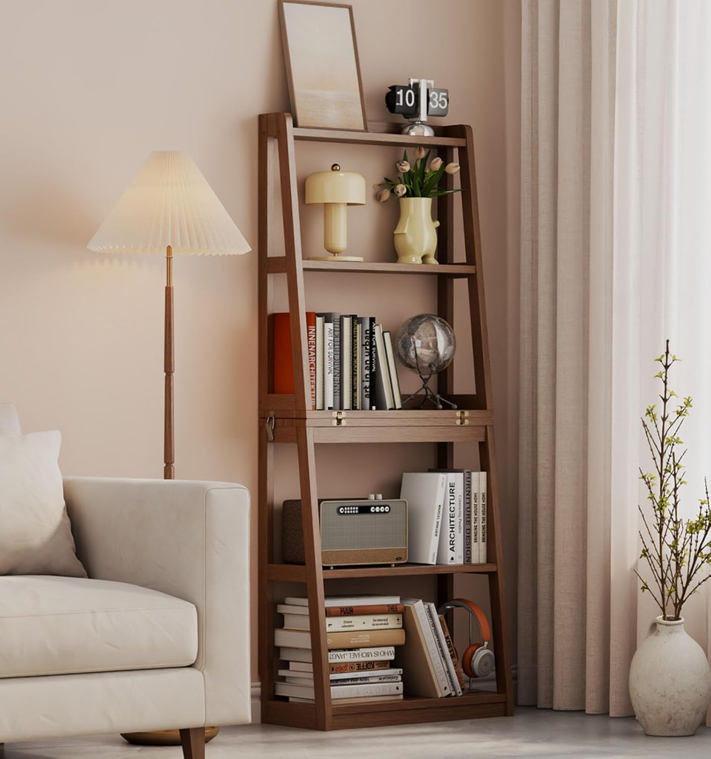 "Soild Wood Ladder Book Shelf 5 Tier Modern Display Bookshelves Wooden Frame Space Saving Folding Book Case