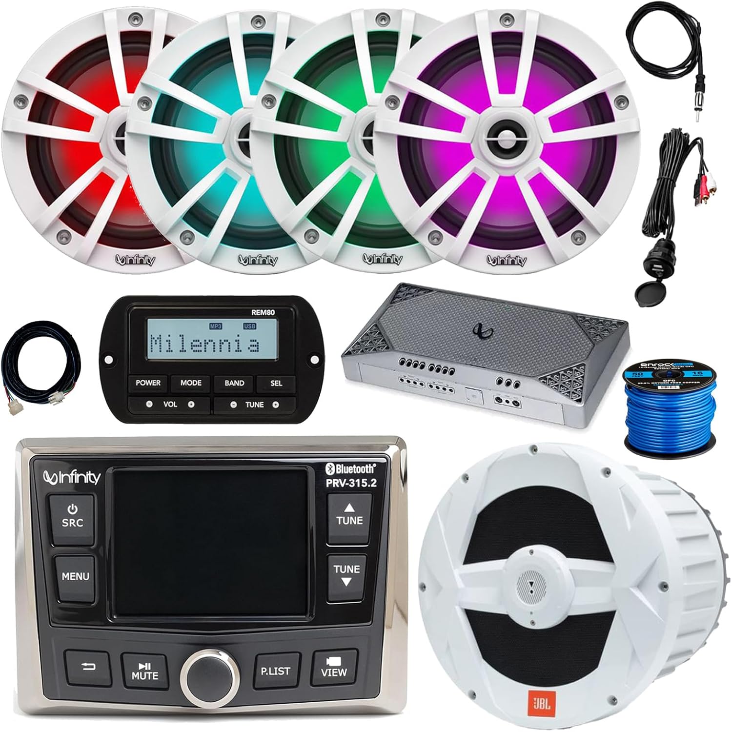 "Infinity PRV-315.2 Marine Gauge Hole Mount Bluetooth AM/FM/WB Radio Receiver