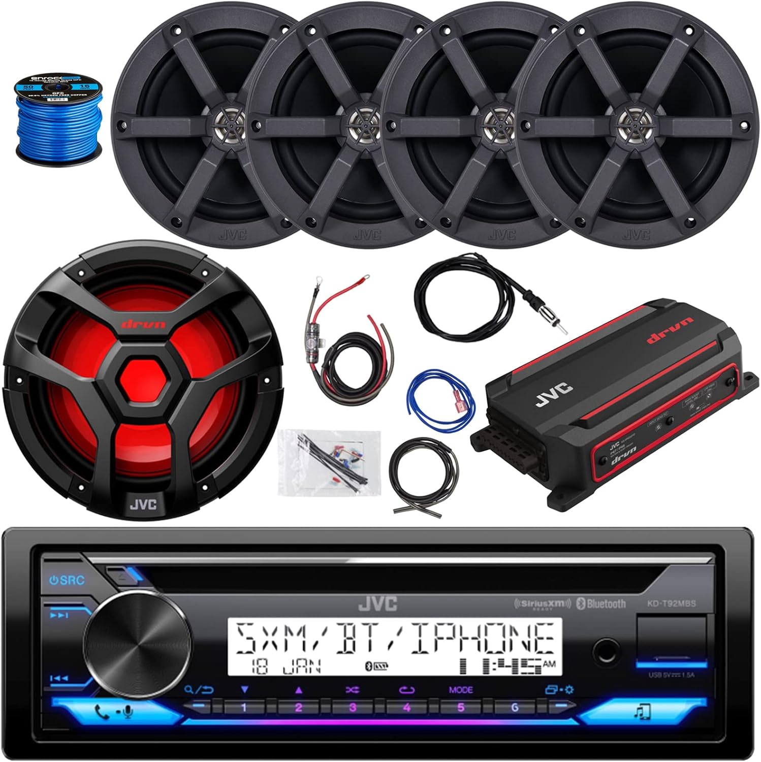 "JVC Single Din Marine Bluetooth USB/AUX CD Stereo Receiver
