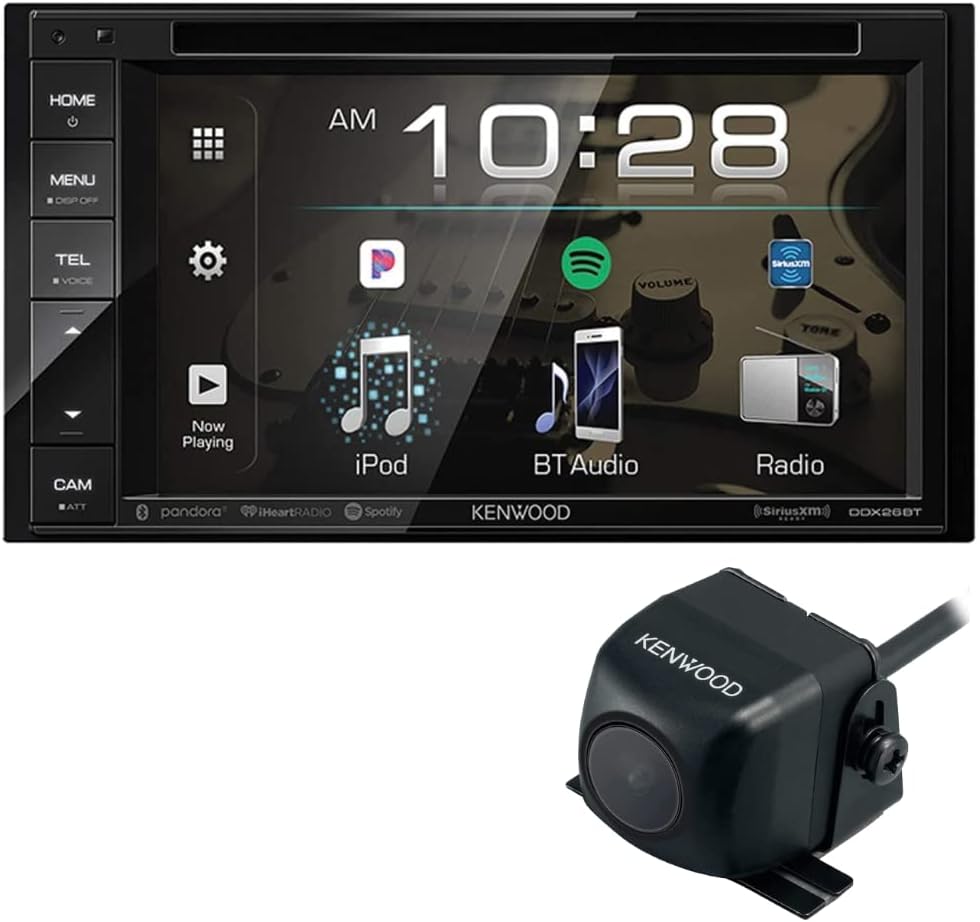 "Kenwood DDX26BT Double DIN SiriusXM Ready Bluetooth in-Dash DVD/CD/AM/FM Car Stereo Receiver w/ 6.2"" Touchscreen | Plus CMOS-230 Rearview Camera with Universal Mounting Hardware & Video Cable"