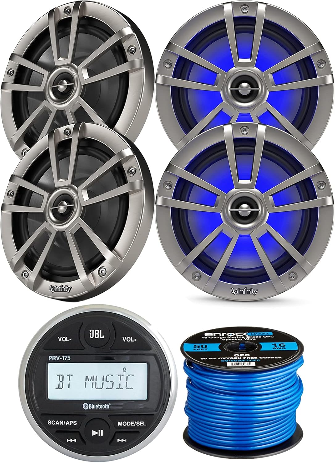 "JBL PRV-175 Marine Gauge Hole Mount USB Bluetooth AM/FM Digital Stereo Receiver