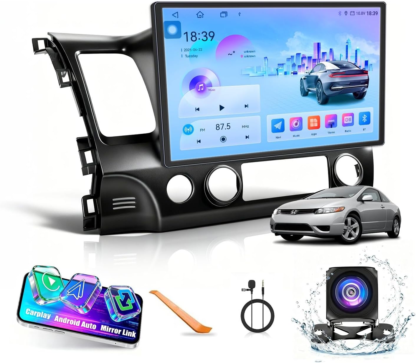 "Kunfine Car CarPlay Android Auto Navigation Stereo GPS Radio Reverse Camera Display 13.1"" QLED Touchscreen Headunit Tablet Pad Media Player for Honda Civic 2006-2011