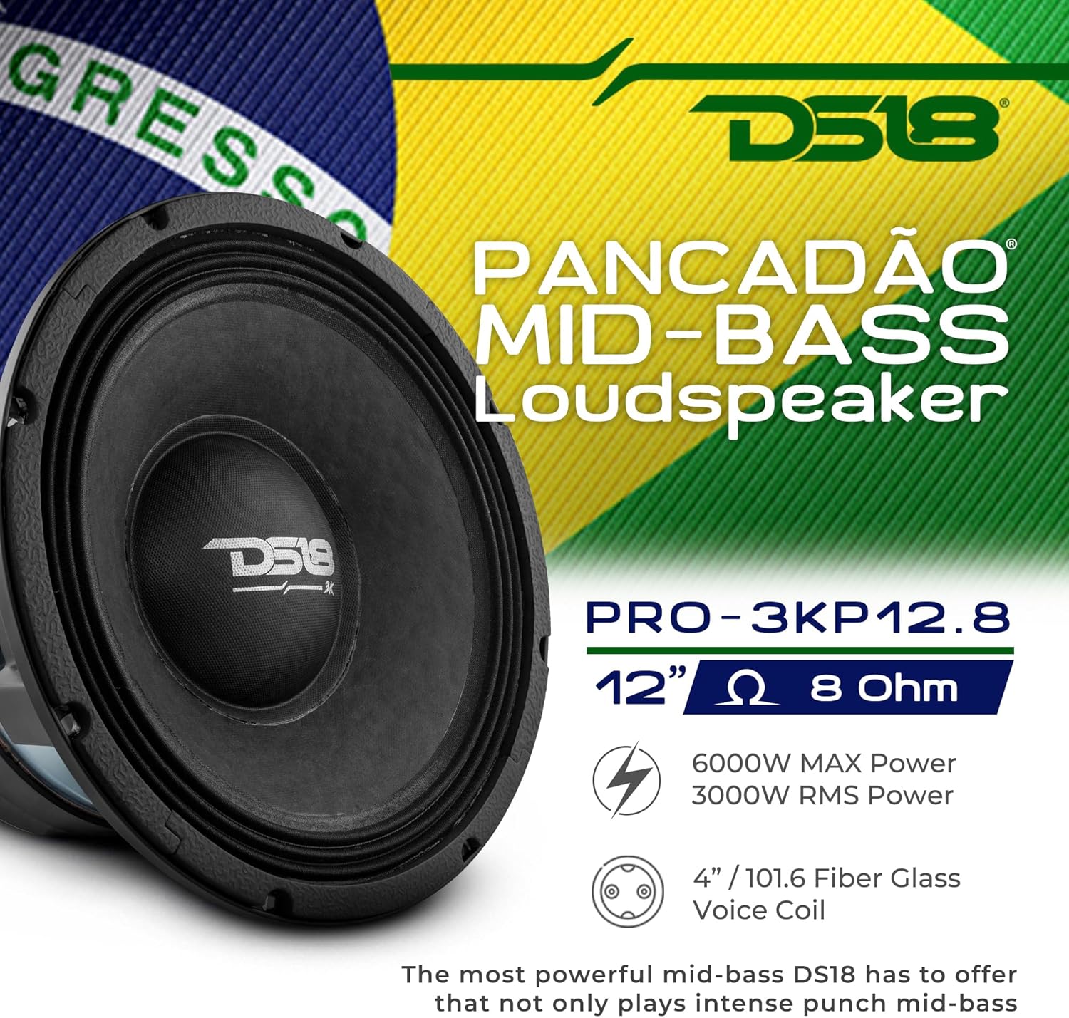 "DS18 PRO-3KP12.8 PANCADO Mid-Bass Loudspeaker 12"" 3000 Watts Rms 6000 Watts Max Power 8-Ohm - Powerful Midrange 12-inch Pro Car Audio"